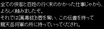 唐隆白を訪ねると萬毒錠(うひゃひゃから手に入る奴)と足かせのカギを手に入れてこいやと言われます。
