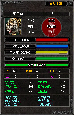 白虎の定春がやっと86から87になりました 樂と洞窟で狩りした甲斐があります。