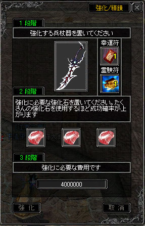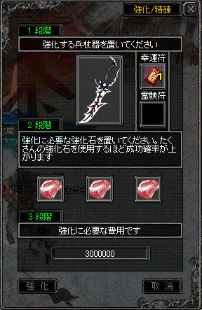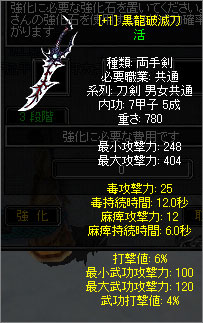先日出来た念願の黒刀、早速強化してみますた(; ̄ー ̄A アセアセ・・・