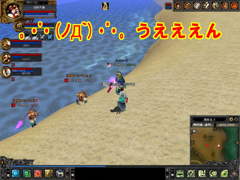 リログした後安全地帯戻されてるの直ってない・・長安で非武装に飛ばされてますよー><